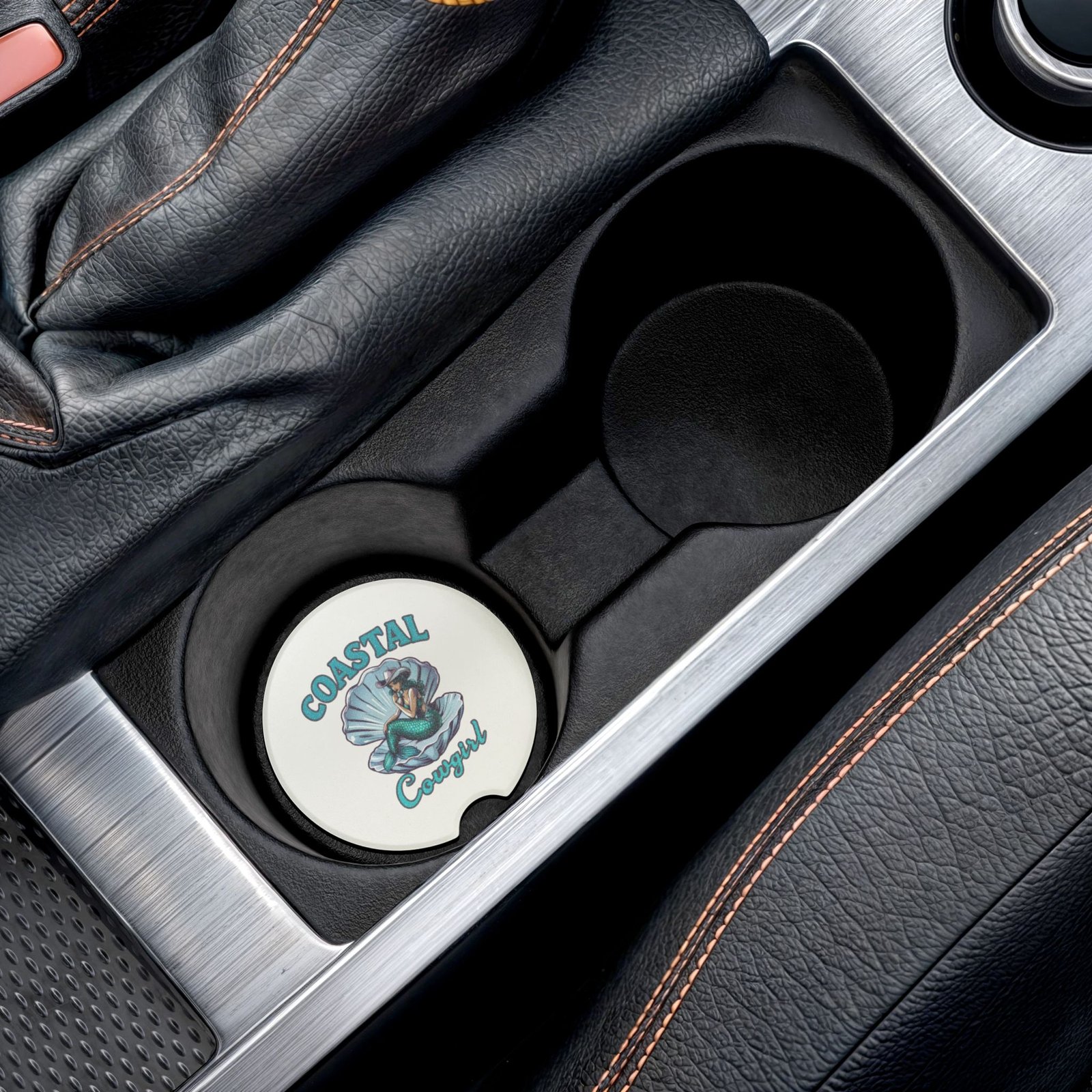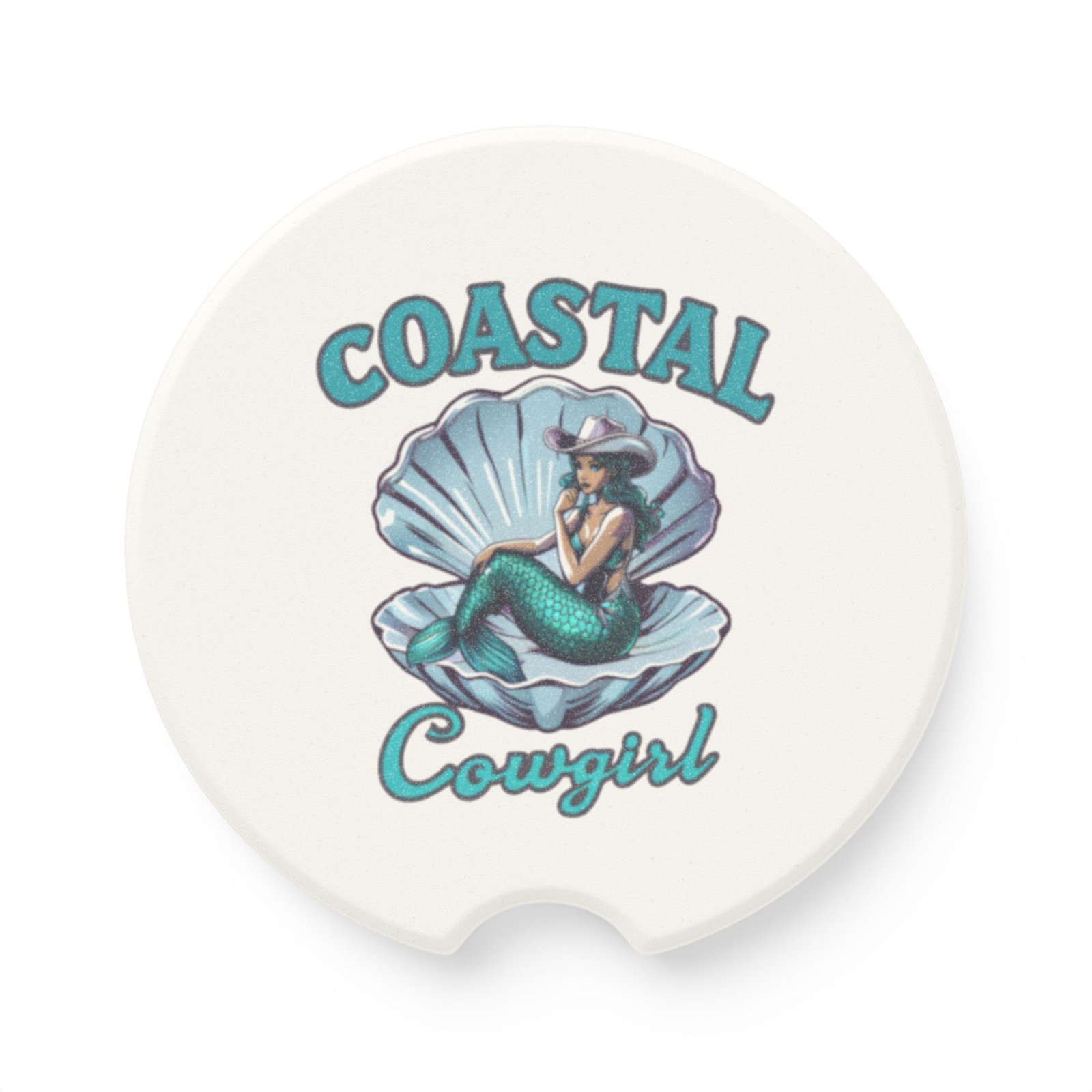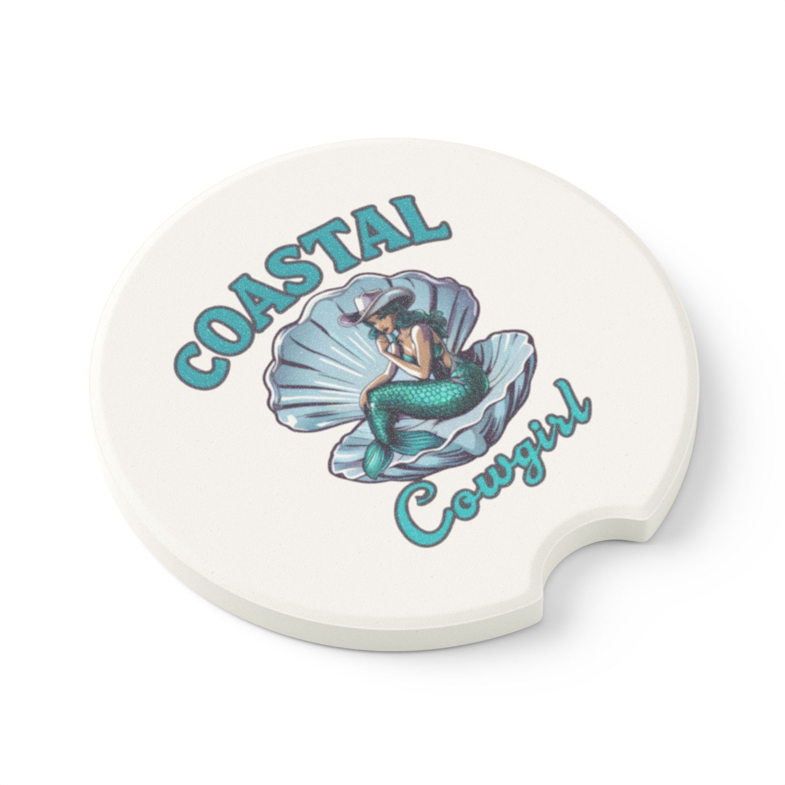 Coastal Cowgirl Soapstone Car Coaster – Southern Style Auto Accessory, Mermaid Gift, Travel Mug Coaster, Beach Decor
