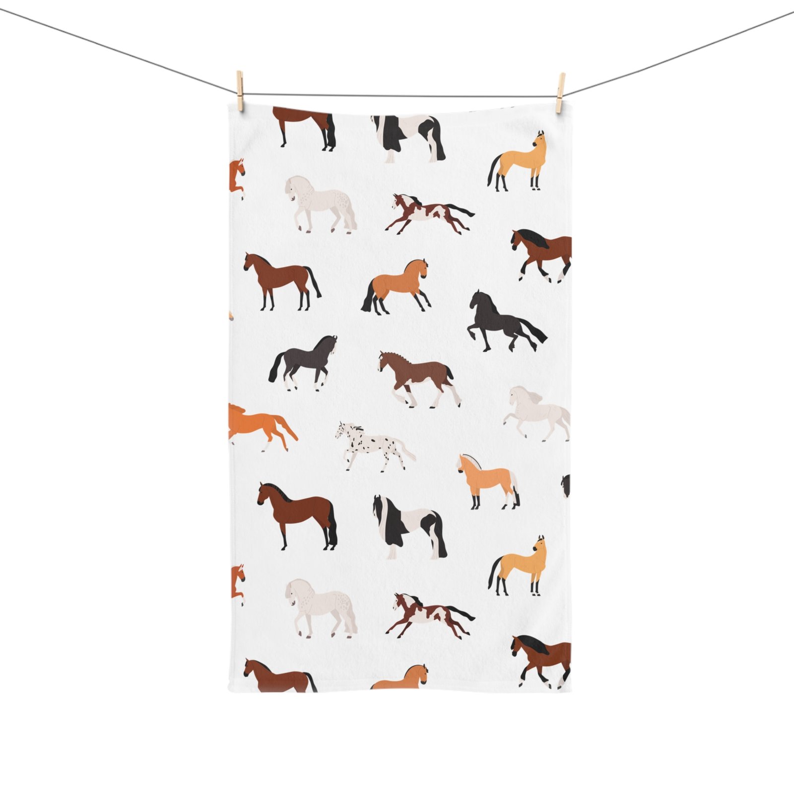 Add a touch of elegance to your kitchen with our stunning Horse Print Tea Towel! Featuring a beautiful assortment of horses in earthy tones of brown, white, and cream, this towel captures the spirit of the equestrian world while enhancing your home decor.