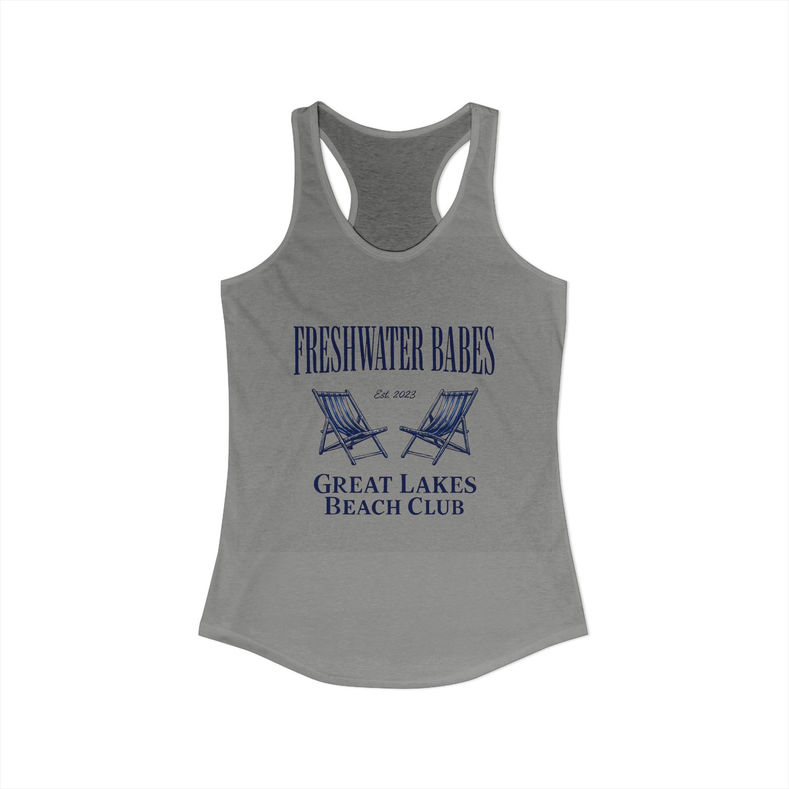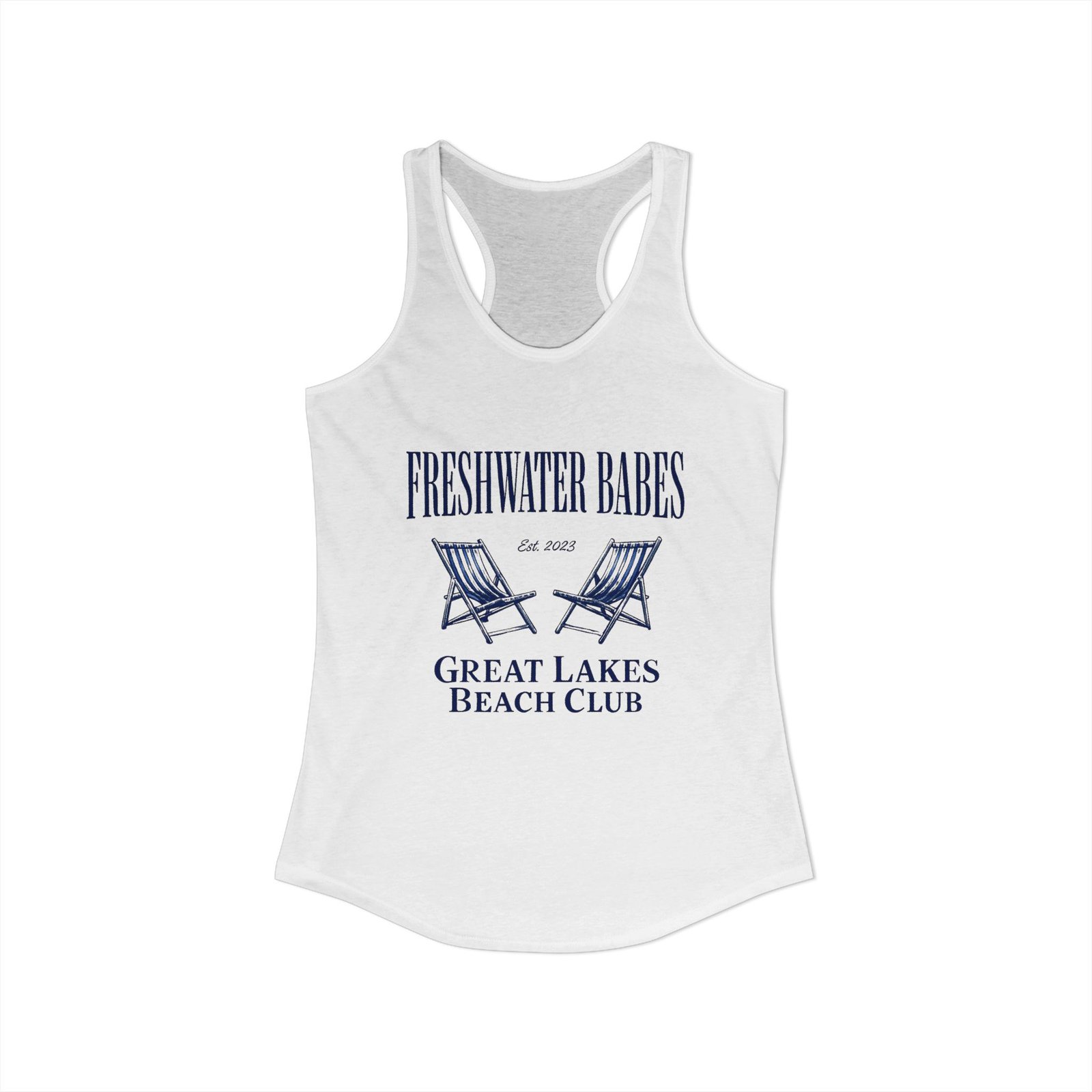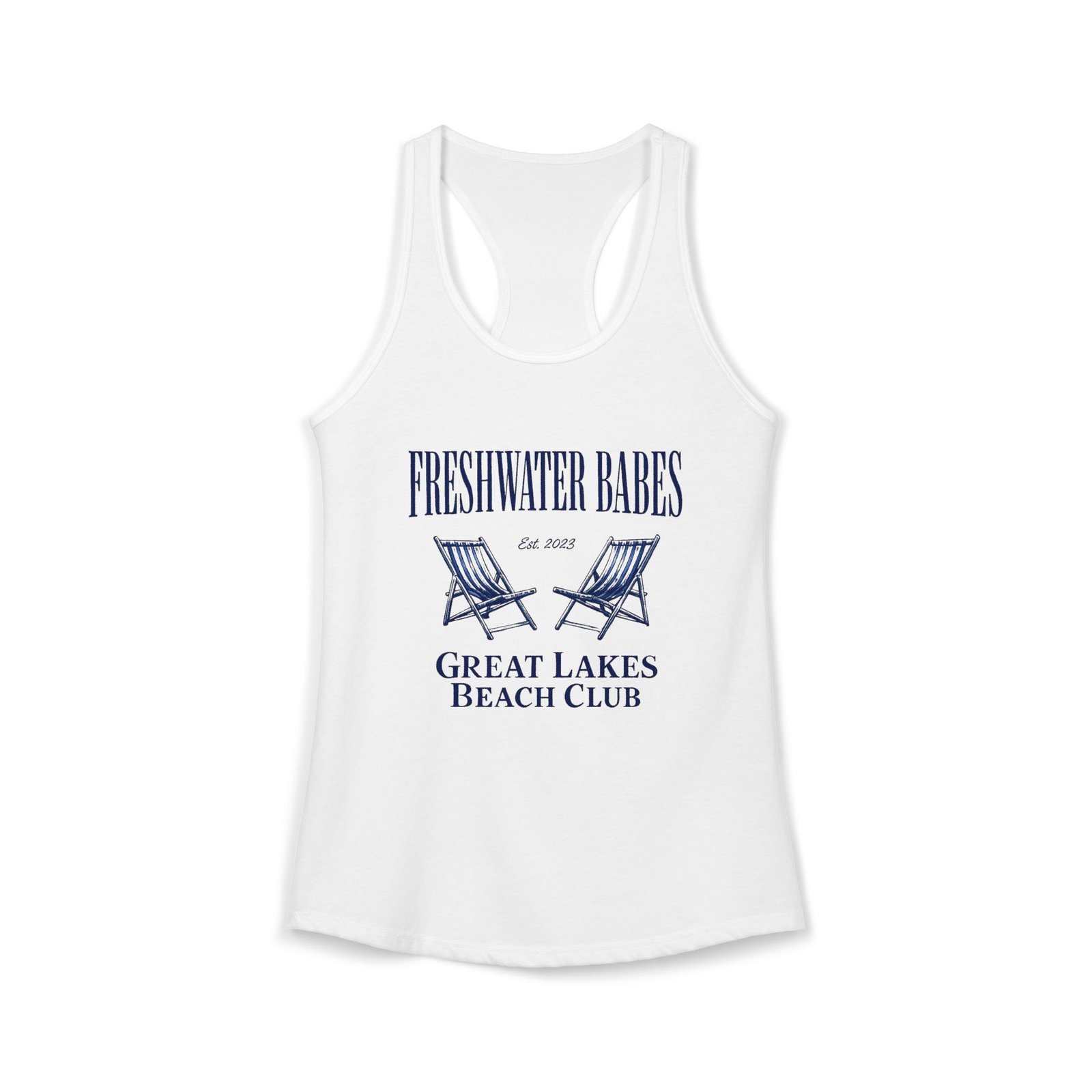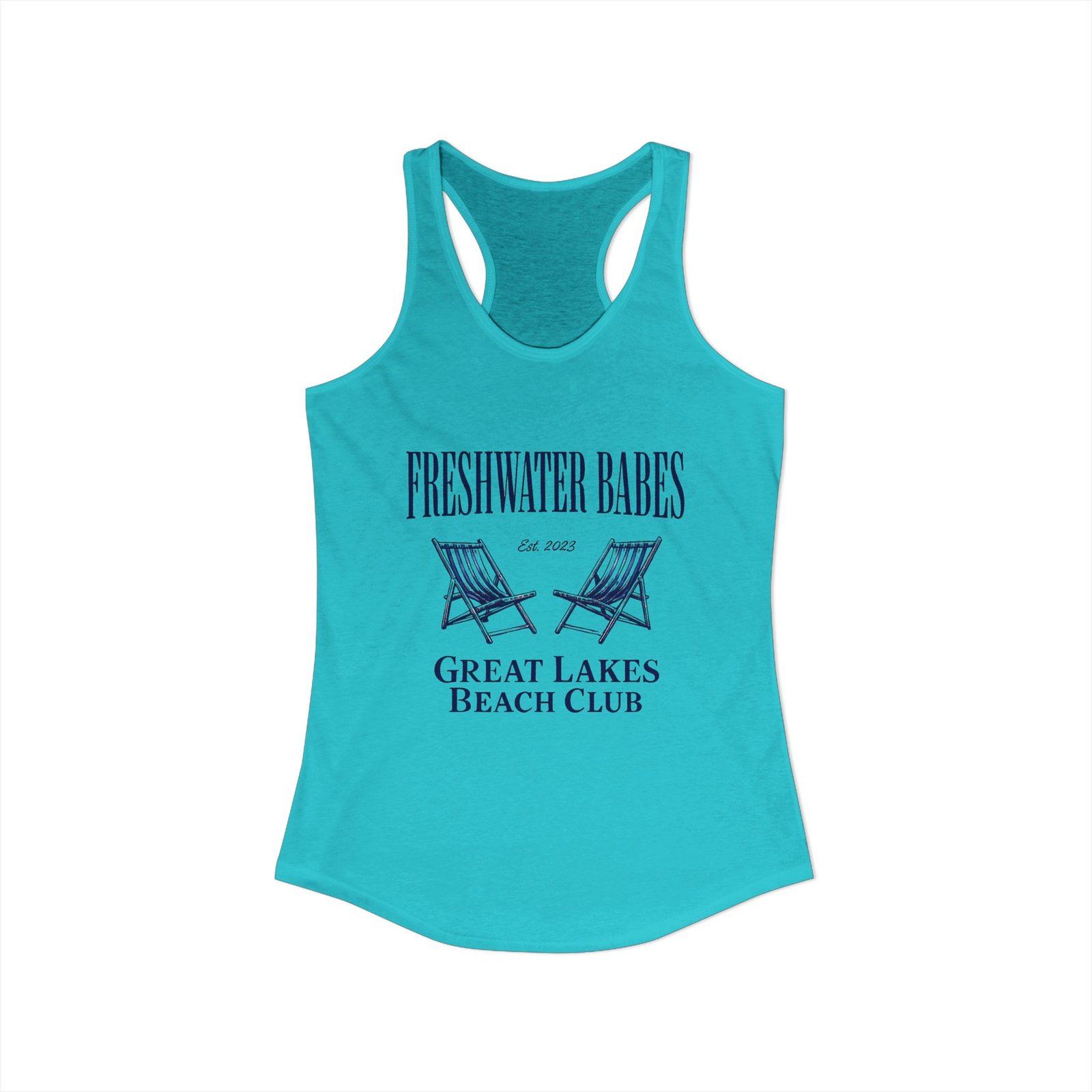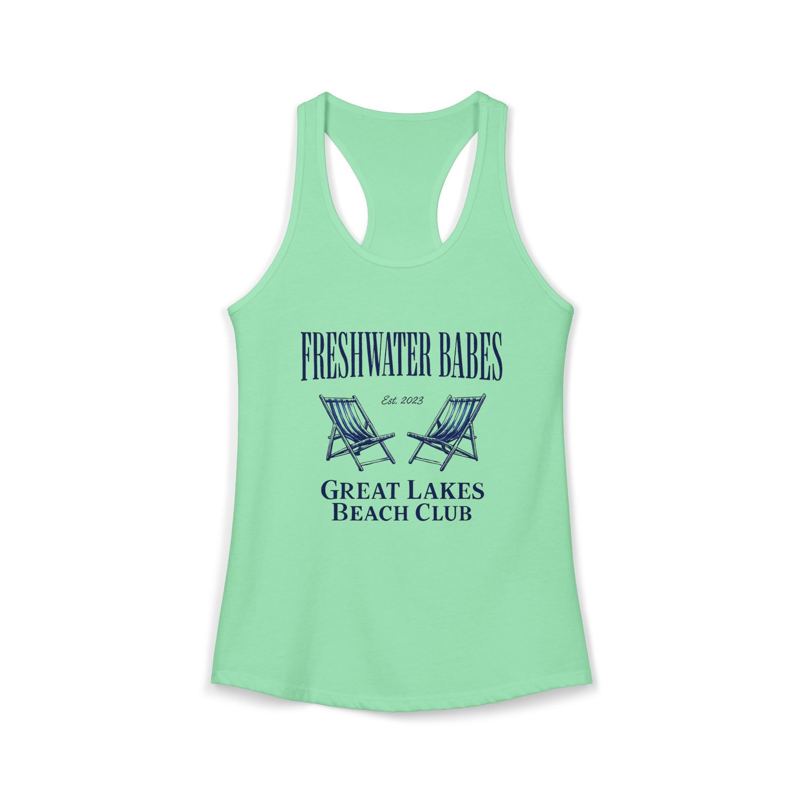 • Unique “Freshwater Babes Great Lakes Beach Club” graphic