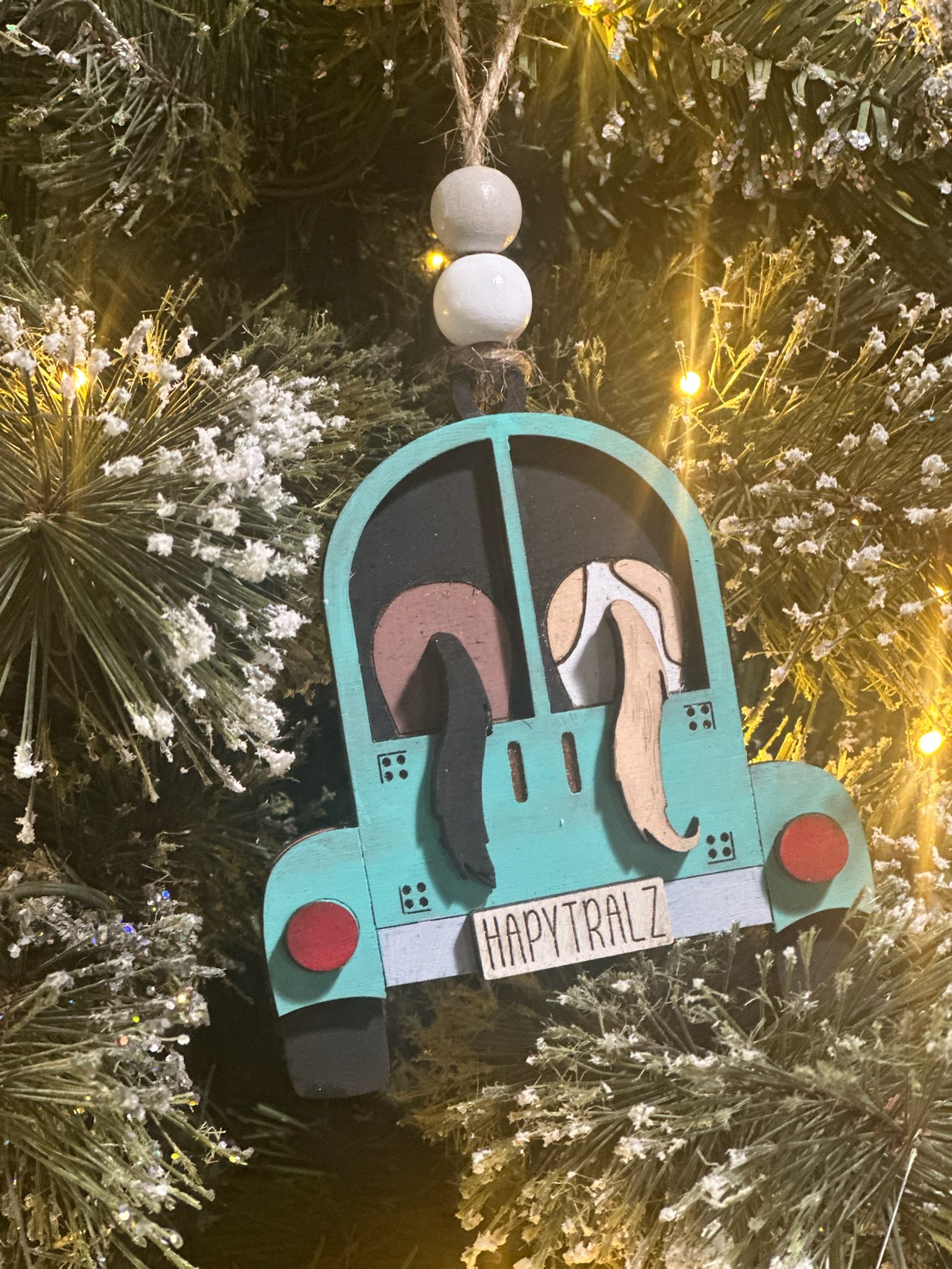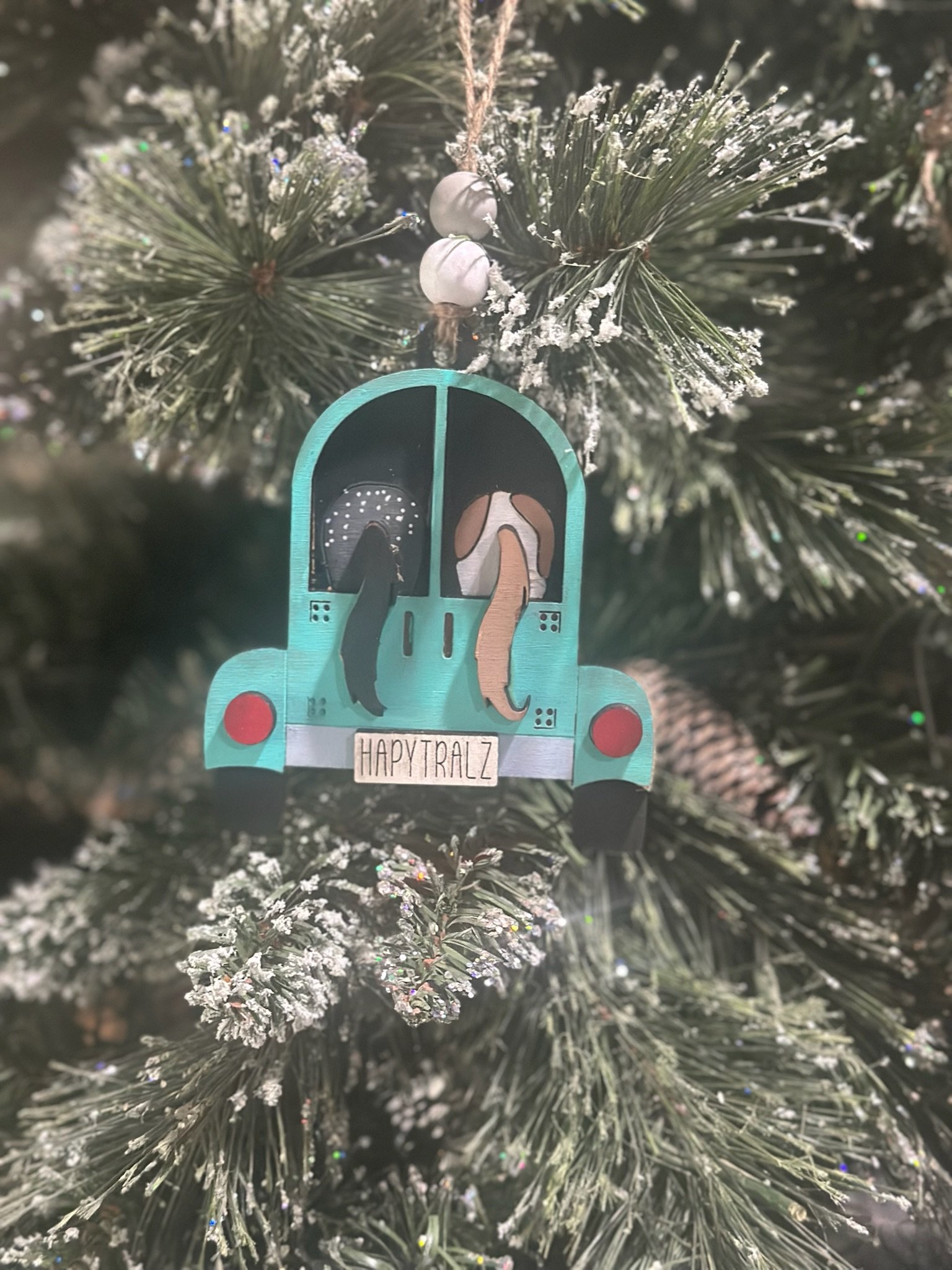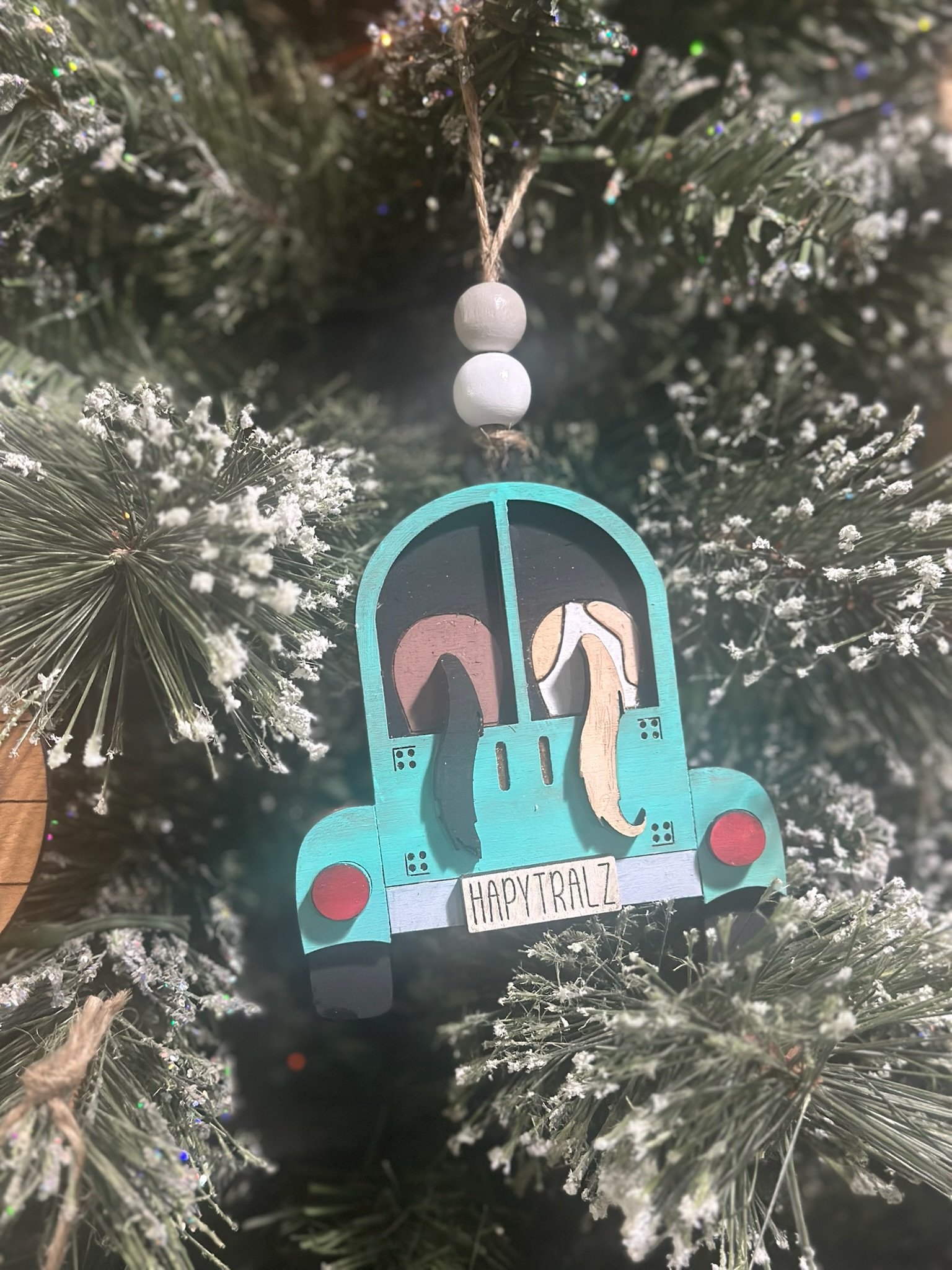 Hit the road with the cutest ornament on the tree – our Happy Trailz Horse Trailer Ornament from Lange Girl Designs in Tecumseh, Michigan. This layered, hand-painted wood ornament shows a vintage pickup pulling a two-horse slant trailer with ears and tails poking out the windows. The license plate reads “HAPPY TRAILZ” and it comes ready to hang with jute twine and wooden bead accent. 100% Customizable – make it YOUR rig! At checkout, tell us: • Truck color (any color – teal, red, black, purple, etc.) • Trailer color (match or contrast the truck) • Horse 1 color/breed (paint, bay, palomino, appy, gray, etc.) • Horse 2 color/breed (same options – or leave the second slot empty for a single-horse trailer look) We hand-paint every piece to order so no two are exactly alike – just like real rigs! Perfect for: • Horse moms & dads • Trail riders • Barrel racers • 4-H & Pony Club families • Barn secret Santa • Stocking stuffers that actually get “ooohs” Product details: Size: approximately 4.5 – 5 inches wide × 3.5 inches tall Material: 1/8″ Baltic birch, layered and hand-painted with non-toxic acrylics Finish: light protective seal Hanger: natural jute twine with wooden beads Production: painted and assembled in-house in Tecumseh, Michigan Processing time: 3–7 business days (worth the wait for custom!)