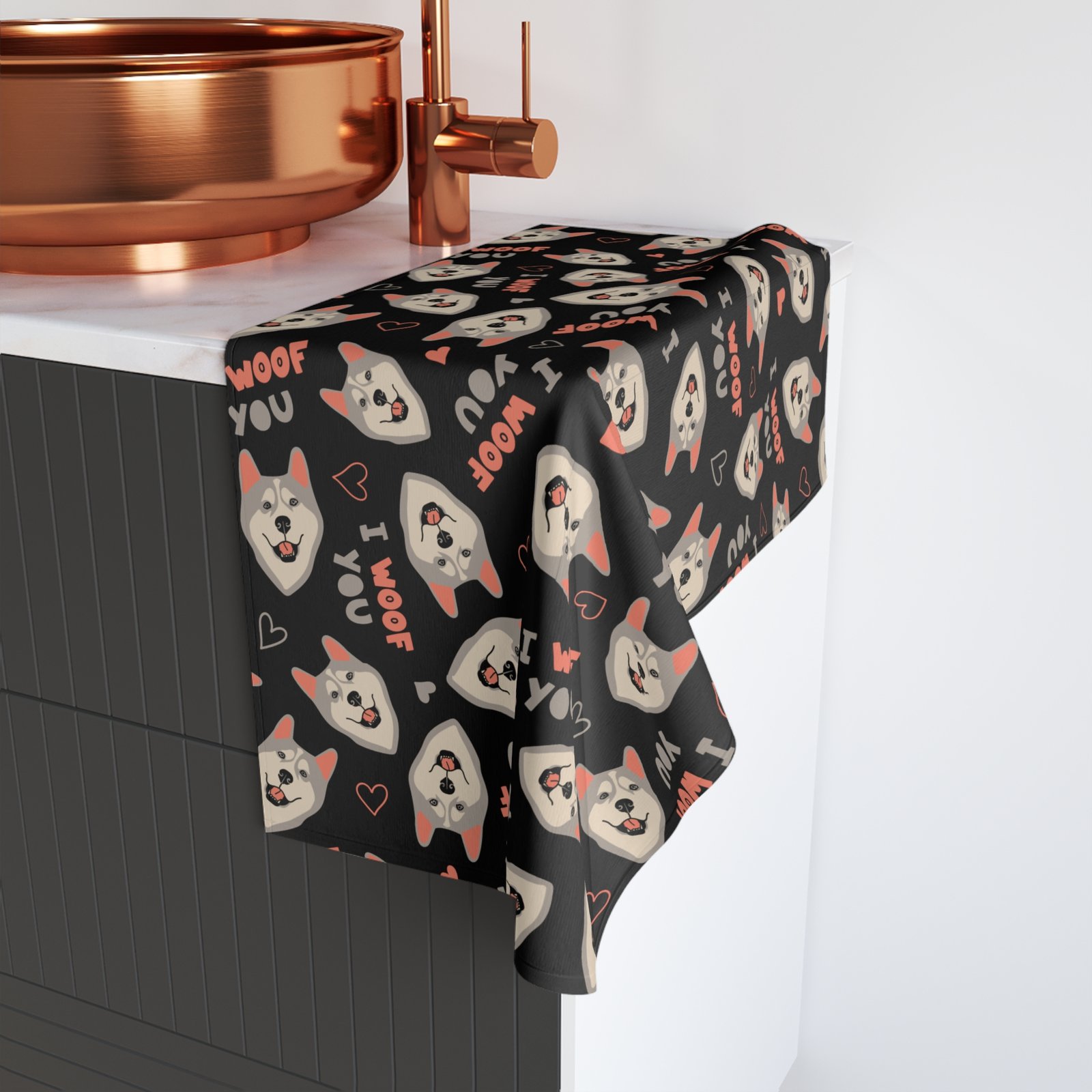 Transform your kitchen into a cozy and inviting space with our Siberian Husky tea towel—where practicality meets delightful charm!