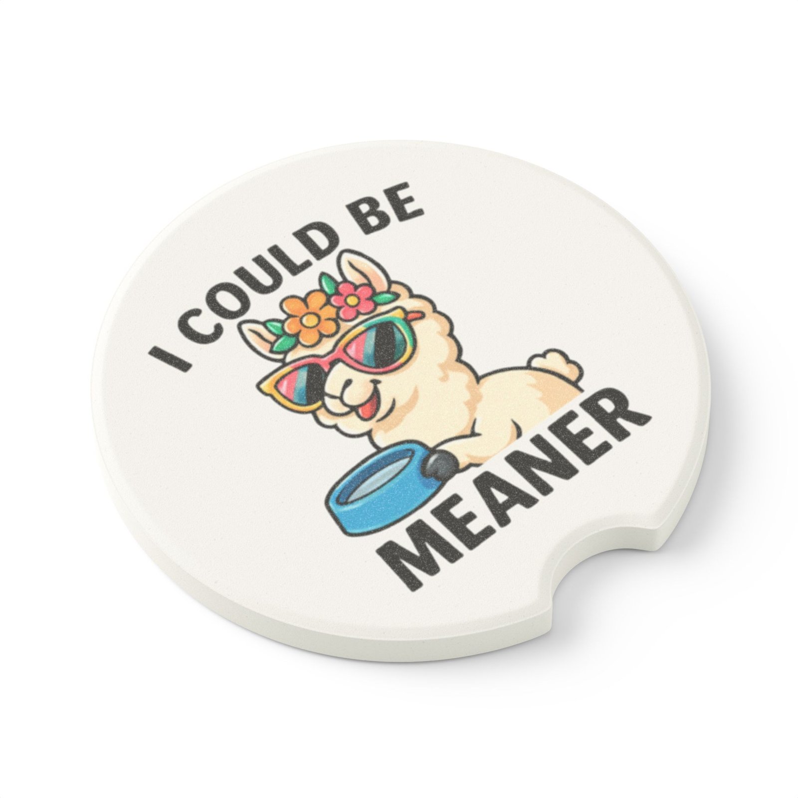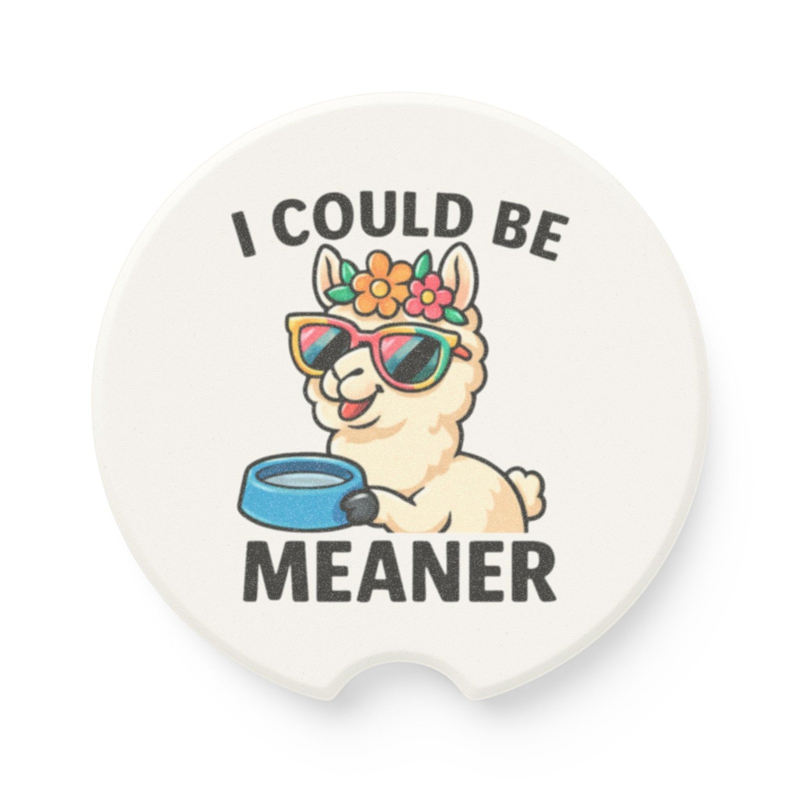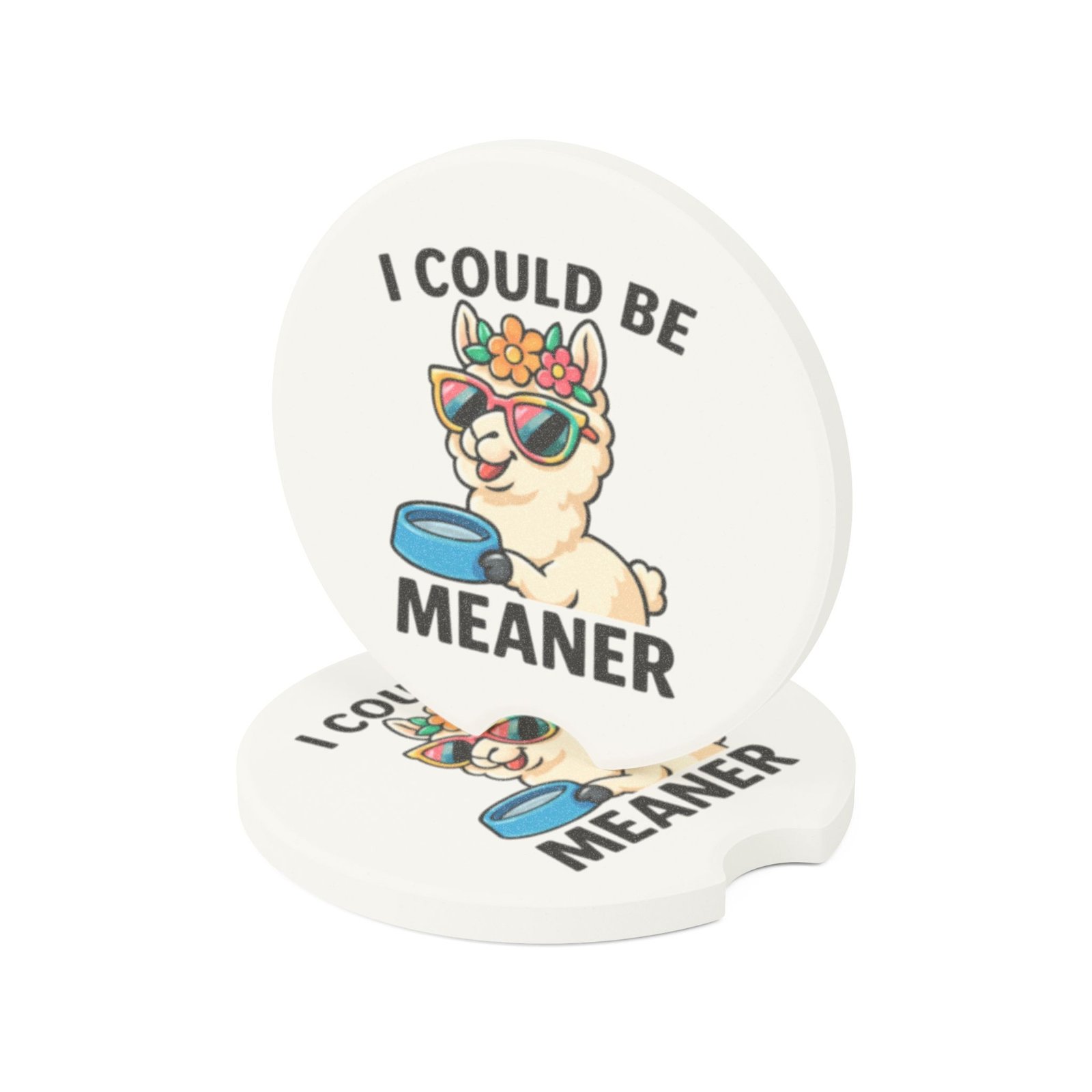 I Could Be Meaner Alpaca Car Coaster – Soapstone, Single or 2-Pack, Llama Design with Flowers and Sunglasses