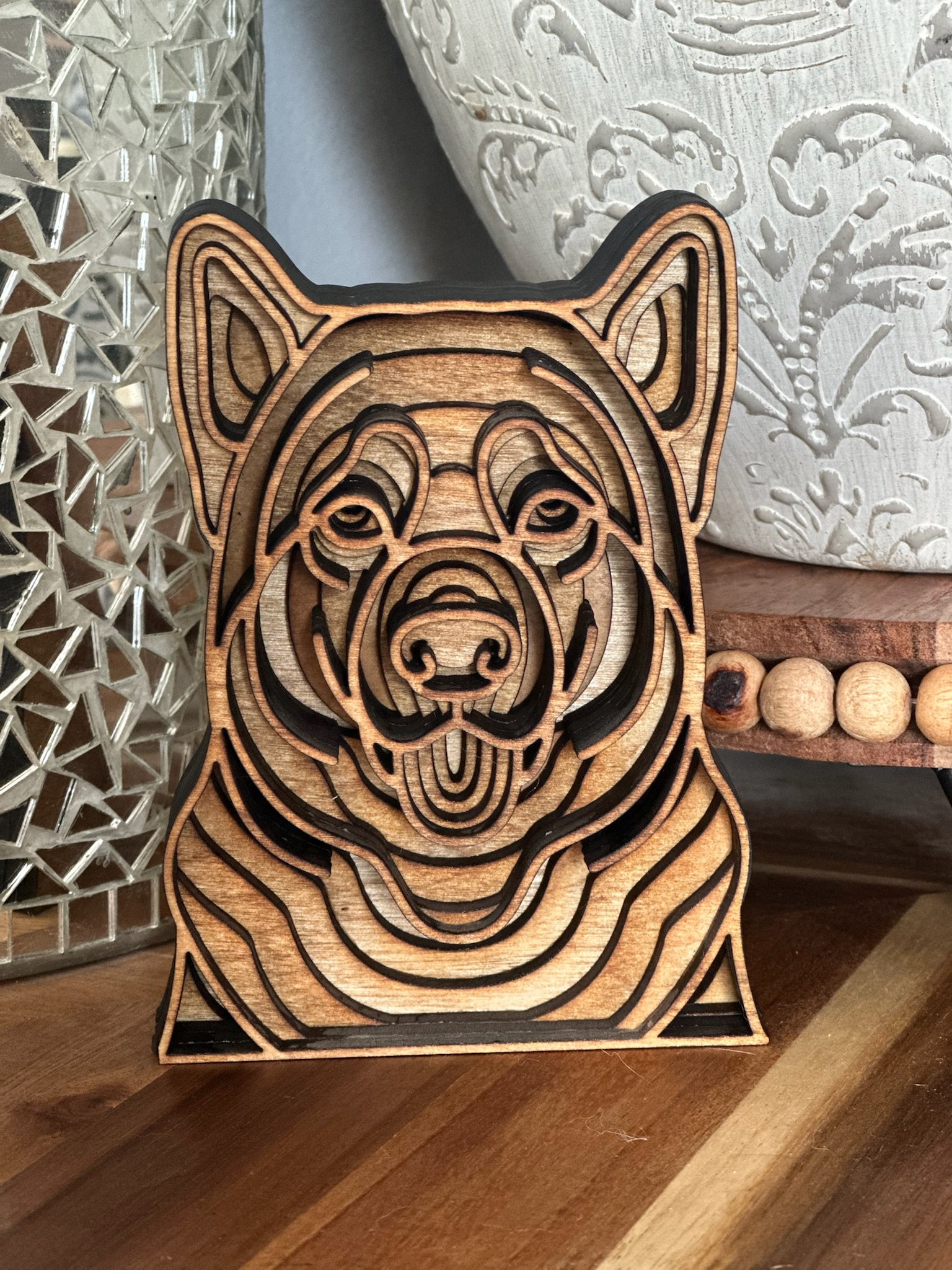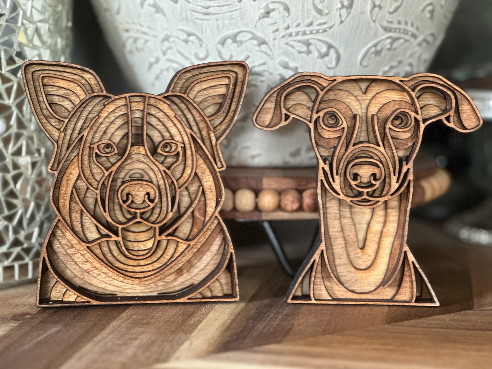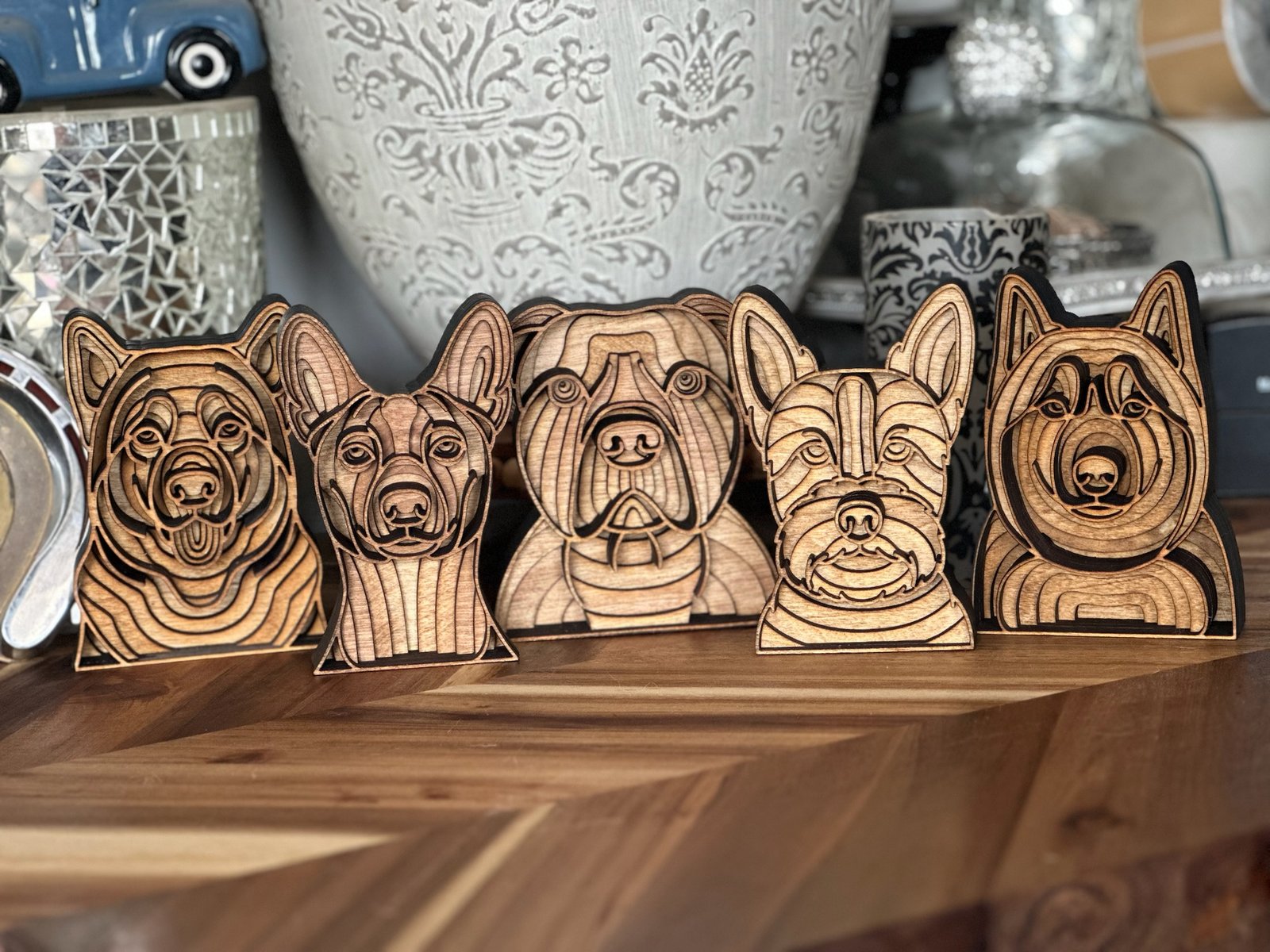 Layered Dog Breed Wood Art – Custom Shelf Sitter Decor | Over 200 Breeds, Personalized Name | Lange Girl Designs, Tecumseh MI