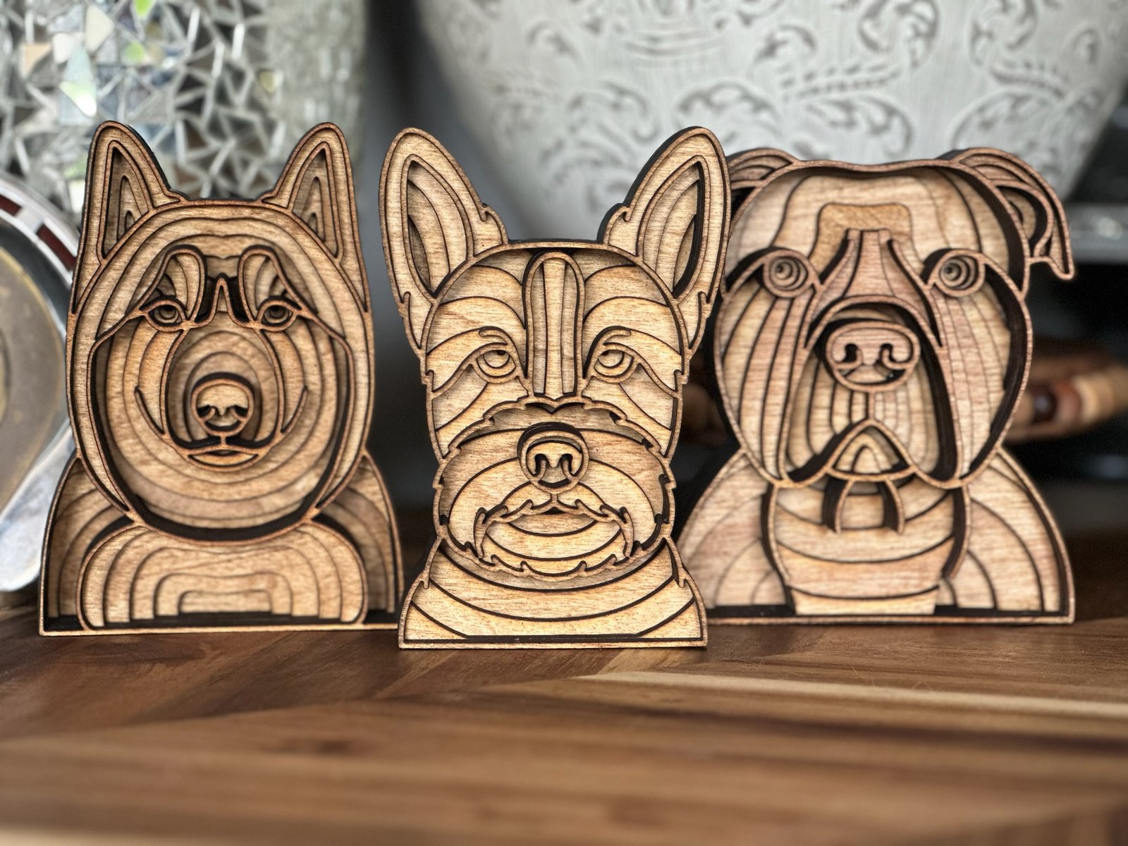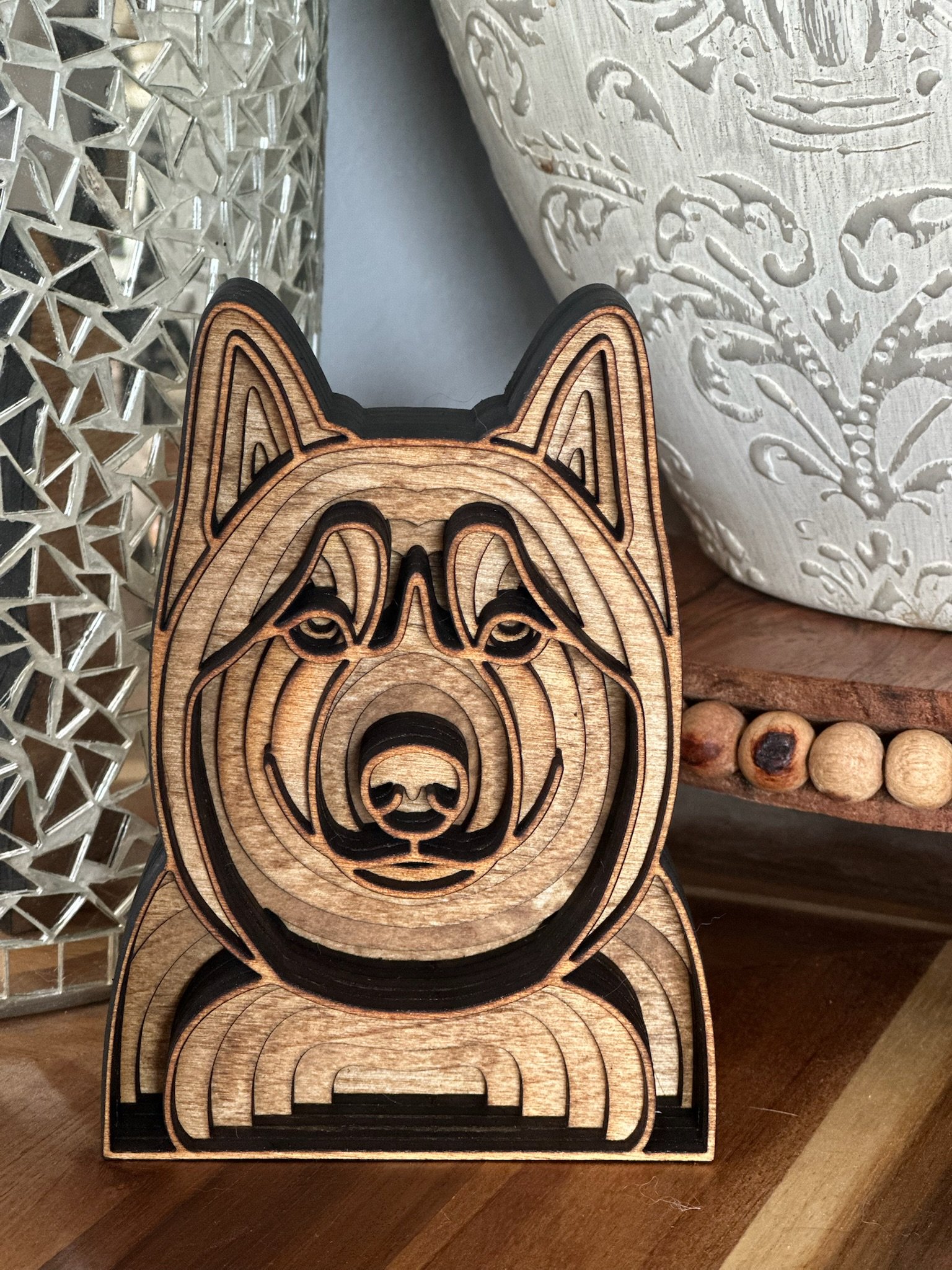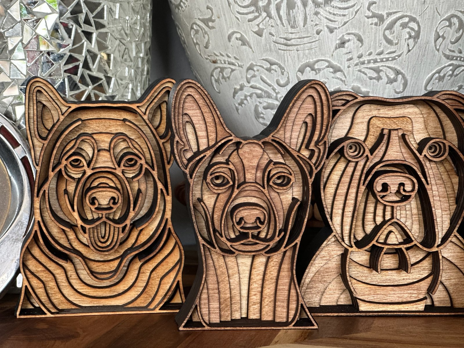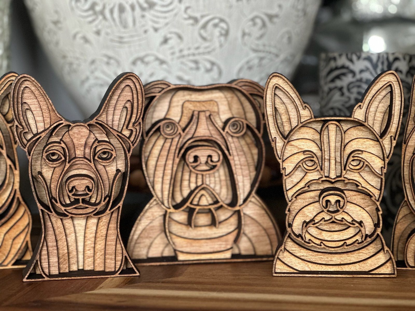 Layered Dog Breed Wood Art – Custom Shelf Sitter Decor | Over 200 Breeds, Personalized Name | Lange Girl Designs, Tecumseh MI