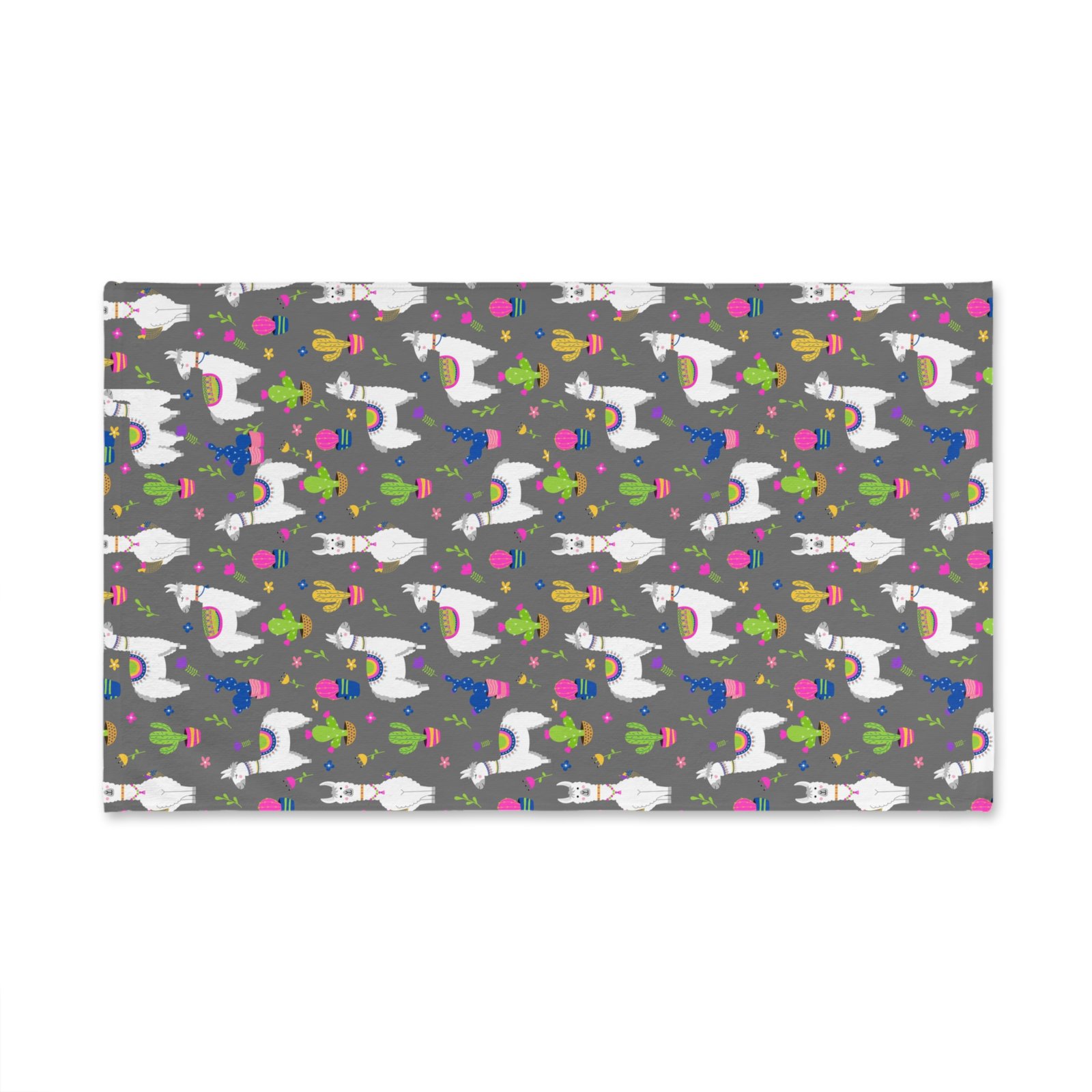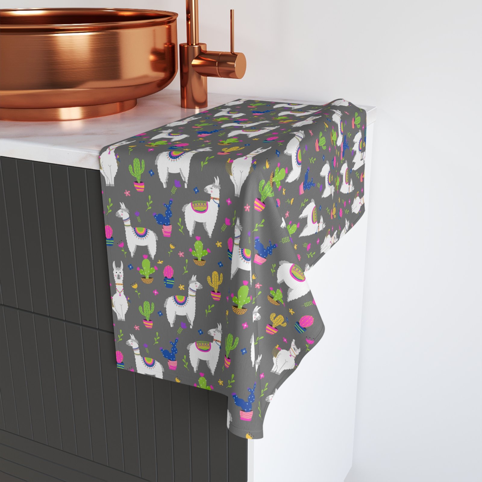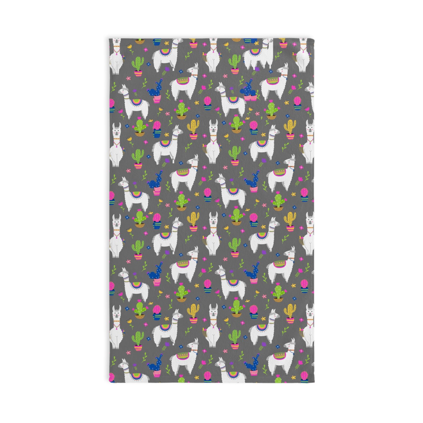 Multicolor Llamas & Cactus in grey Soft Tea Towel