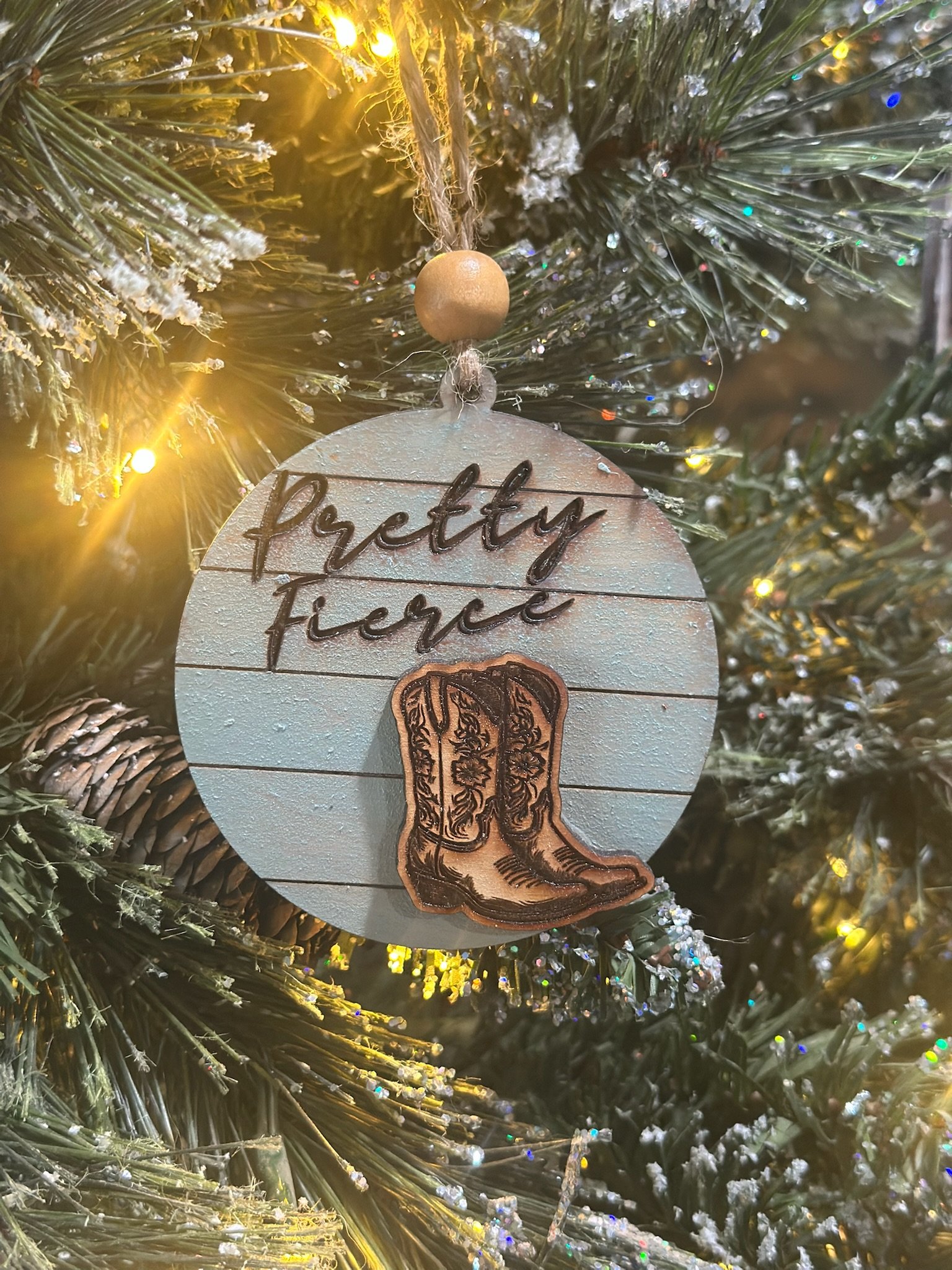 Pretty Fierce Cowboy Boot Ornament – Western Girl Power Christmas Decor | Lange Girl Designs, Tecumseh MI