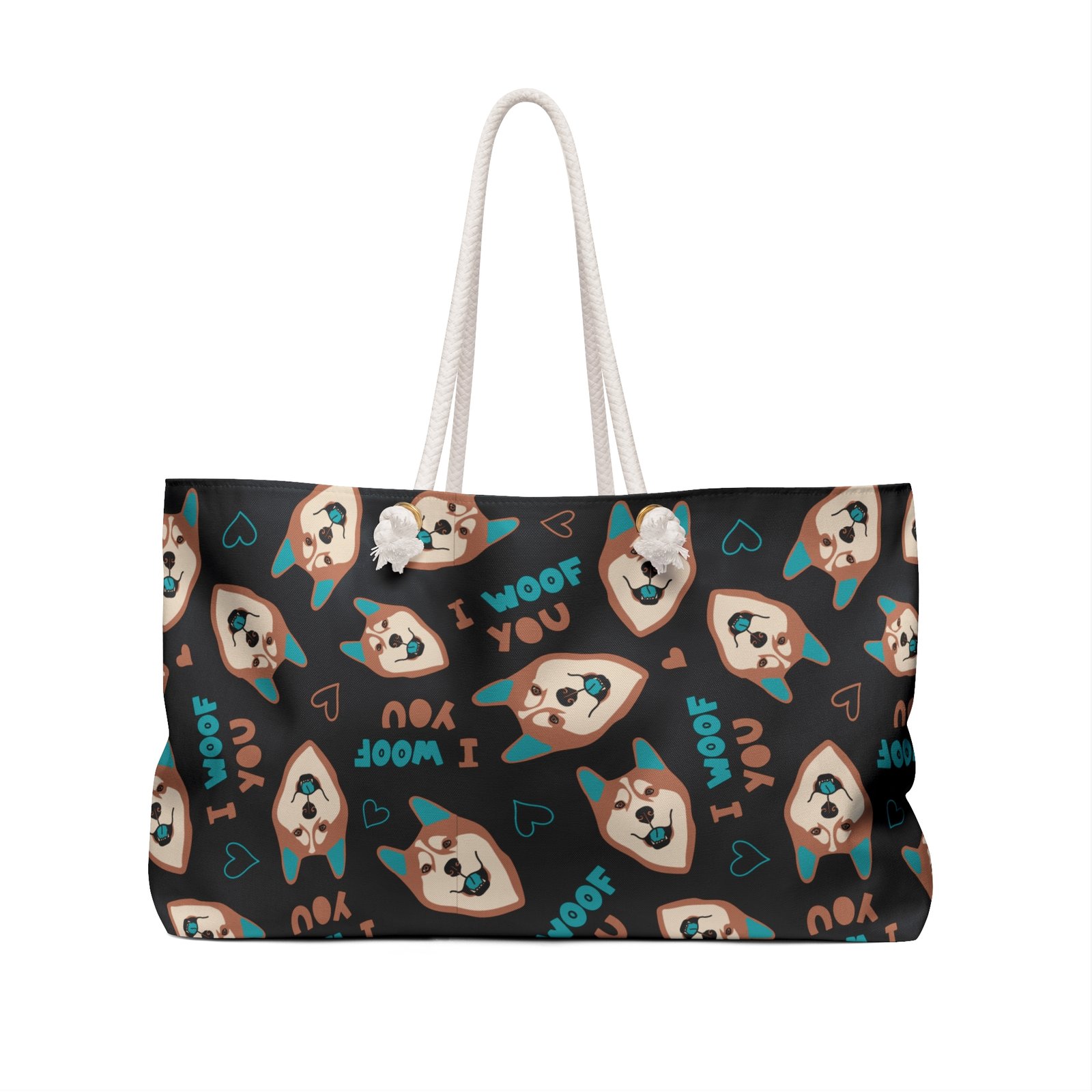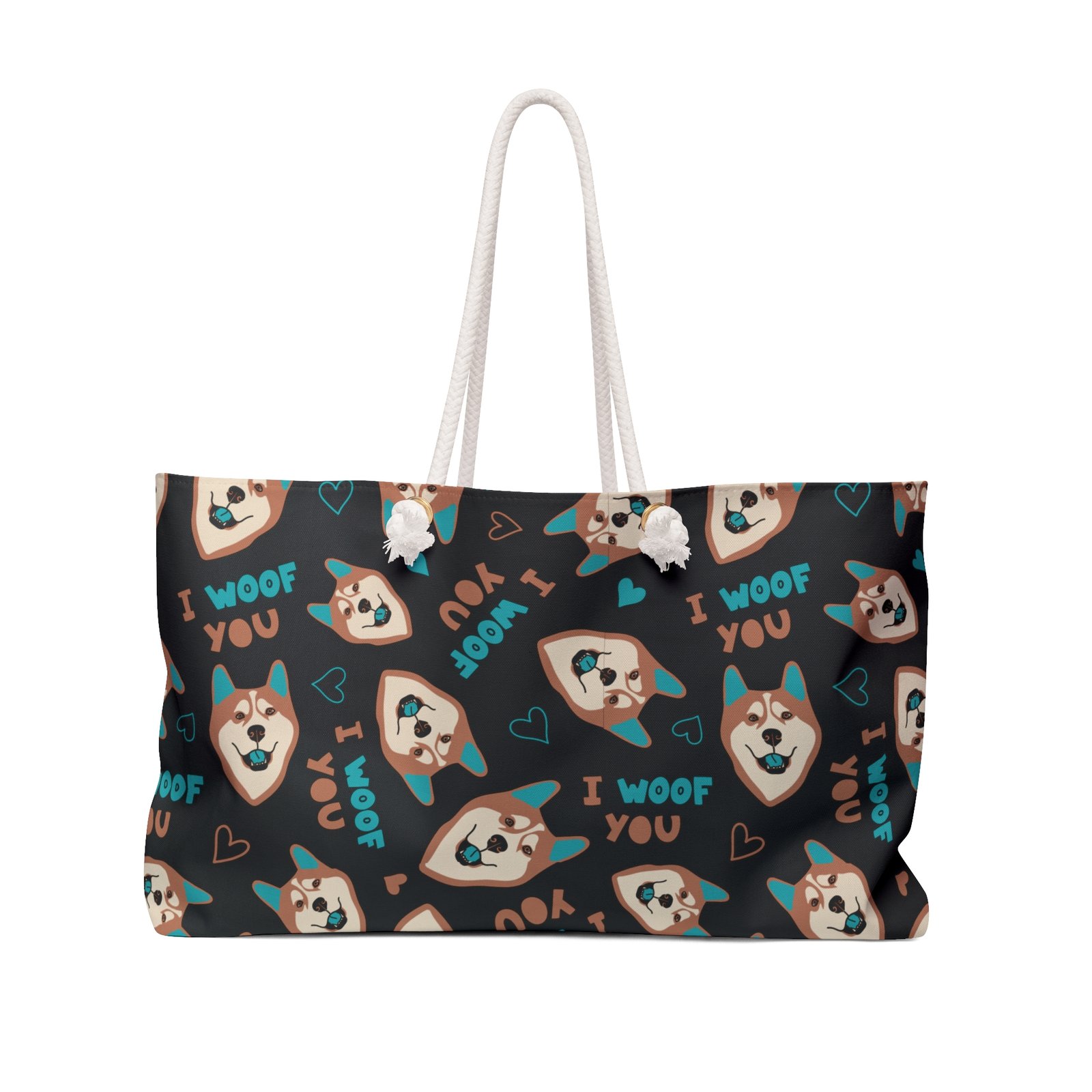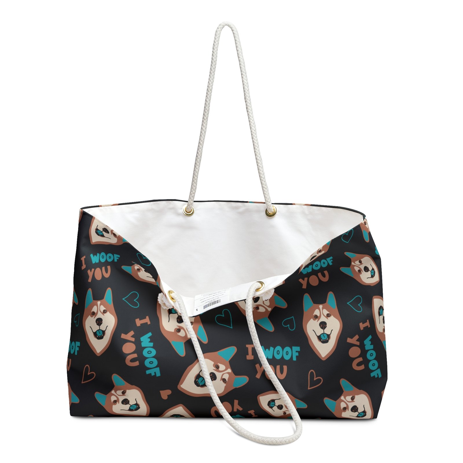 Red Siberian Husky I Woof You Teal & Black All Over Weekender Bag