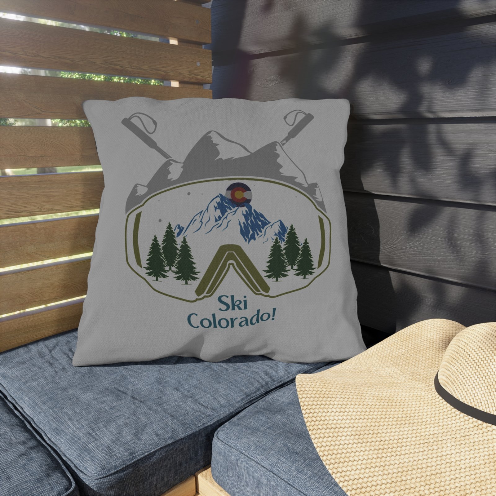 Ski Colorado Goggles Mountains & Poles Outdoor Pillows